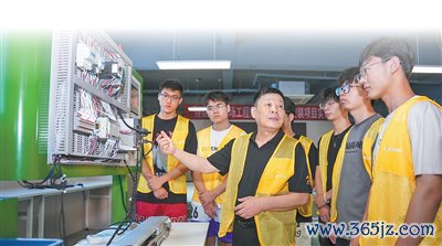 企业导师指引苏州业绩技能大学学生在车间实践。 叶 军摄